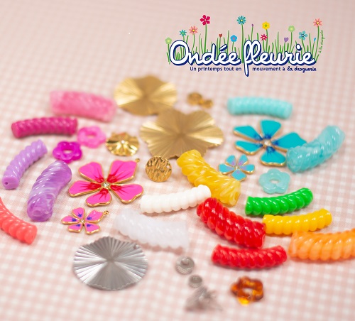花モチーフのチャームやビーズ、春らしいカラーのチューブビーズの新色など